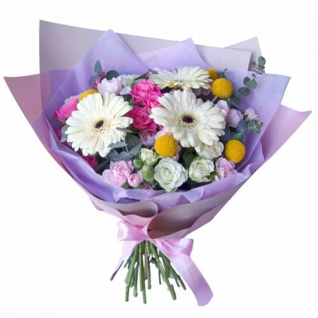 Букет с хризантемами и герберами оказался очень красивый! Цветы свежие ! Спасибо !